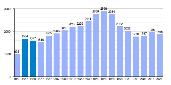 | Gráfica de evolución demográfica de Villaturiel[6] entre 1842 y 2021 |