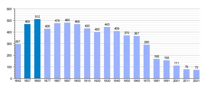 | Gráfica de evolución demográfica de Villaverde Mogina[1] entre 1842 y 2021 |