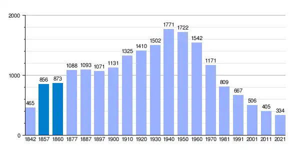 Gráfica de evolución demográfica de Villaverde de Guadalimar[3]​ entre 1842 y 2021