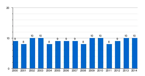 | Gráfica de evolución demográfica de Villaverde de Omaña entre 2000 y 2014 |
