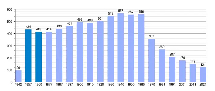 Población de derecho según los censos de población del INE. Población de hecho según los censos de población del INE.Entre el censo de 1857 y el anterior, crece el término del municipio porque incorpora a Revenga.[3] |