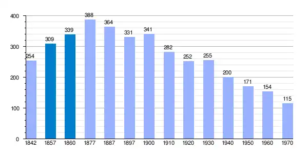 | Gráfica de evolución demográfica de Villaverde del Monte[5] entre 1842 y 1970 |
