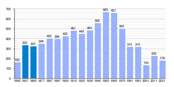 | Gráfica de evolución demográfica de Villaveza del Agua[9] entre 1842 y 2021 |
