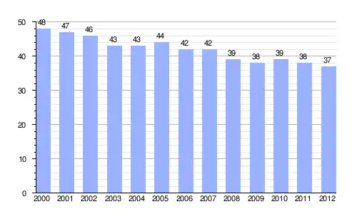 | Gráfica de evolución demográfica de Villavieja de Muñó entre 2000 y 2012 |