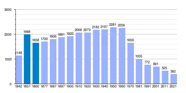 Gráfica de evolución demográfica de Villazanzo de Valderaduey[6]​ entre 1842 y 2021