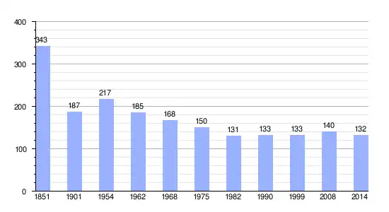 | Gráfica de evolución demográfica de Villebadin entre 1851 y 2014 |