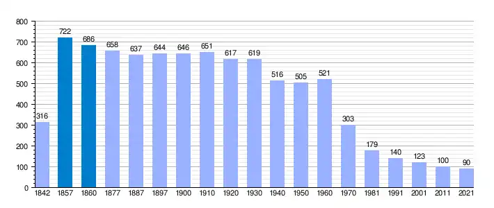 | Gráfica de evolución demográfica de Villegas[3] entre 1842 y 2021 |