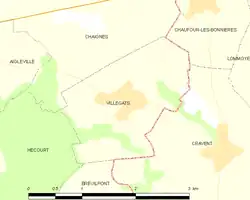 - Situación de Villegats en un mapa de Francia y de comunas limítrofes (en francés)
