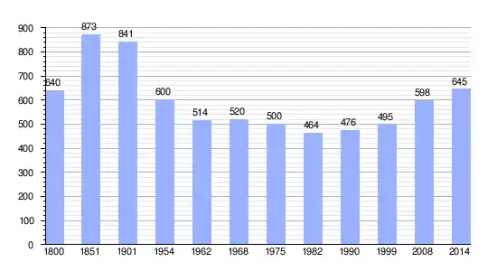 Los datos demográficos contemplados en este gráfico de la comuna de Villemoisan[4] se han cogido de 1800 a 1999 de la página francesa EHESS/Cassini, y los demás datos de la página del INSEE.[5]