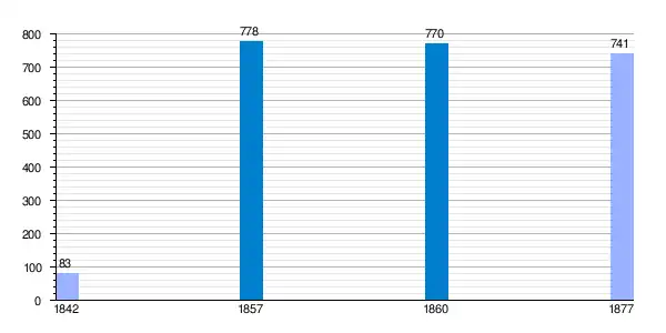 | Gráfica de evolución demográfica de Villosilla de la Vega[2] entre 1842 y 1877 |