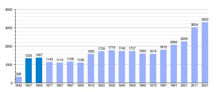 Población de derecho según los censos de población del INE Población de hecho según los censos de población del INEEn 1857 crece el término del municipio porque incorpora a Salitja[5] |