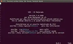 Vim version 7.4.1689 corriendo en GNU Linux Ubuntu 16.04
