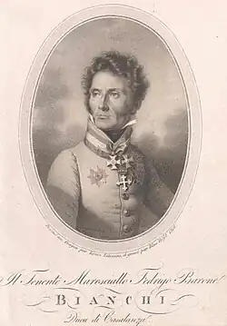 Vicente Ferrer de Bianchi estudió en la Academia Imperial de Ingeniería de Viena. En 1788, fue subteniente en las fuerzas armadas de Eslavonia y se destacó en el asedio de Bubtiza. Durante las guerras Napoleónicas participó en diversos hechos de armas, destacando su participación en la batalla de Leipzig. En 1815 participó en la Guerra austro-napolitana y derrotó en la batalla de Tolentino a Joachim Murat, expulsando a este del trono de Nápoles y asegurando la restauración borbónica.[3] Por sus servicios recibió el título de duque de Casalanza del rey Fernando I de las Dos Sicilias. Padre del mariscal de campo Friedrich von Bianchi.