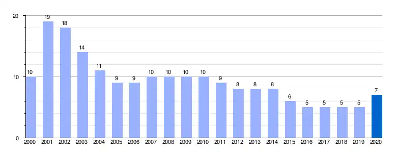 Datos obtenidos por la Población de derecho del INE.[7]     Década actual.