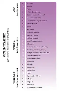 - ↑ «Violentómetro | educagénero». 1 de marzo de 2018. Consultado el 6 de diciembre de 2024.
