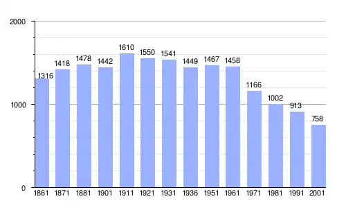 | Gráfica de evolución demográfica de Vione entre 1861 y 2001 |