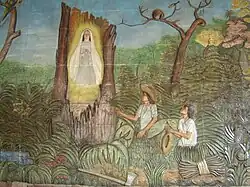 En esa época ya la Virgen tenía retocados el rostro y las manos. Felipe Barroso, hijo de la expresada Elvira, había edificado en ese año un cuarto techo de palma de 9 a 10 varas de largo, al que poco después se le dio la largura de 15 varas con el auxilio de los vecinos (2). Este texto, quizás sea la más antigua de las versiones escritas sobre la aparición de la Virgen, y fue tomada por Victoriano Rivero y Egüez del archivo de la Parroquia, el año 1890. Como se puede observar, la leyenda relatada por Aquiles Gómez, guarda cierta afinidad con el documento aunque también hay diferencias.
