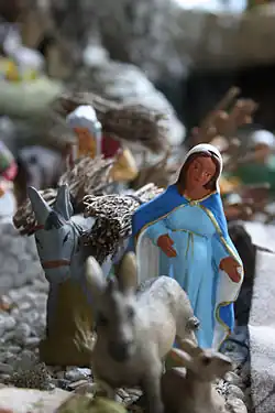 Entre los pasajes evangélicos que incluyen escenas del periodo de embarazo de la Virgen (desde la Anunciación hasta el viaje para censarse, primero a Jerusalén y finalmente a Belén) se encuentra el de la Visitación: el encuentro entre María y su prima Isabel, que también estaba embarazada (de Juan el Bautista).