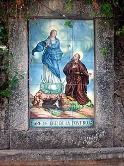 La Virgen de los Lirios y San Felipe Neri en la Font Roja. Según el historiador Adrián Espí, Felipe Neri ocupa el lugar de Antoni Bonaventura Guerau miembro de su congregación (Congregación del Oratorio).[1]