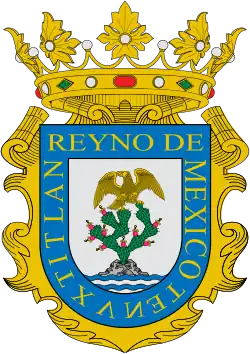 | El escudo del Ayuntamiento de México era también usado como símbolo referencial del virreinato de Nueva España.[4] | ||||||||||||||||||||||||||||||||||||||||||||||||||||||||||||||||||||||||||||||||||