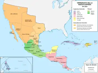 | Virreinato de la Nueva España Reino de la Nueva España[1] | ||||||||||||||||||||||||||||||||||||||||||||||||||||||||||||||||||||||||||||||||||