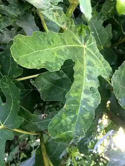![]() Hoja de higuera con el virus del mosaico. | ||
