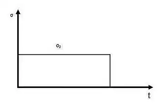 Como se muestra en la figura adjunta, el ensayo de relajación[18] describe como es la respuesta tensional a deformación constante a lo largo de un período de tiempo. En materiales viscoplásticos, las pruebas de relajación muestran una relajación o disminución de la tensión asociada a la carga uniaxial bajo deformación constante. De hecho, estos ensayos caracterizan la viscosidad y se pueden utilizar para determinar la relación que existe entre la tensión y la velocidad de deformación viscoplástica. La descomposición de la velocidad de deformación es
