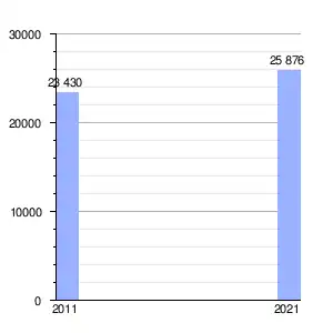 | Gráfica de evolución demográfica de Viseu entre 2011 y 2021 |