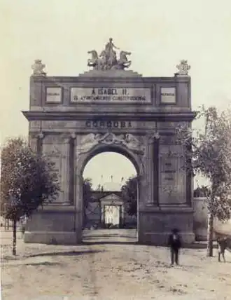 ![]() Arco de Isabel II, hoy desaparecido, que se construyó en honor a la visita de la reina | ||