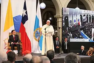 - ↑ «Papa vuelve a mencionar tema indígena en discurso en la Universidad Católica». La Tercera. 17 de enero de 2018. Consultado el 19 de enero de 2018.