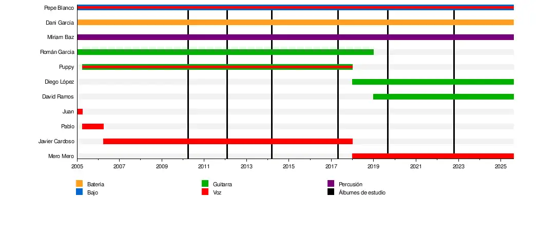 Román García (guitarras) Puppy (guitarras y voz) Javier Cardoso (voz) Pablo Jiménez (voz) Juan Barajas (voz) | ||