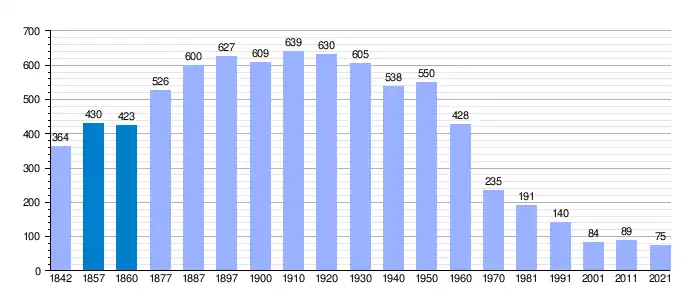 Gráfica de evolución demográfica de Vivel de Río Martín[3]​ entre 1842 y 2021