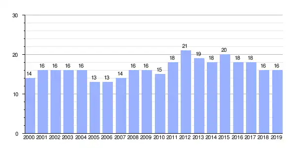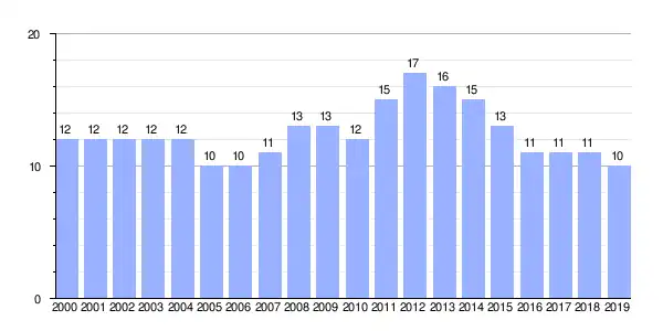 | Gráfica de evolución demográfica de Vivente (lugar) entre 2000 y 2019 |