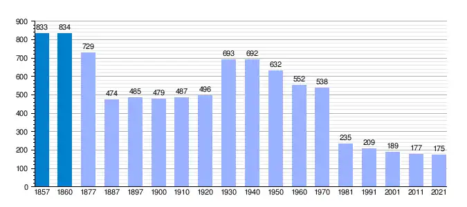 | Gráfica de evolución demográfica de Viver y Serrateix[6] entre 1857 y 2021 |