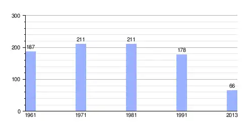 Hasta 2013 la población era de 66 habitantes,[4] con una densidad de población de 12,2 hab/km².[4]