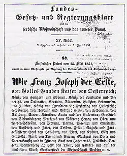 Las dos lenguas oficiales del Voivodato eran el alemán y el ilirio, el que después pasaría a ser el serbo-croata.