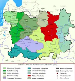 ![]() Voivodato de Vítebsk en rojo. Las fronteras del voivodato no cambiaron desde la Unión de Lublin. | |||||||||||||||||||||||||||||||