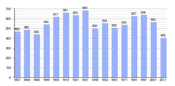 | Gráfica de población de Vojišnica 1857-2011 |