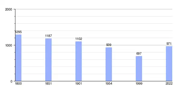| Gráfica de evolución demográfica de Volnay entre 1800 y 2022 |