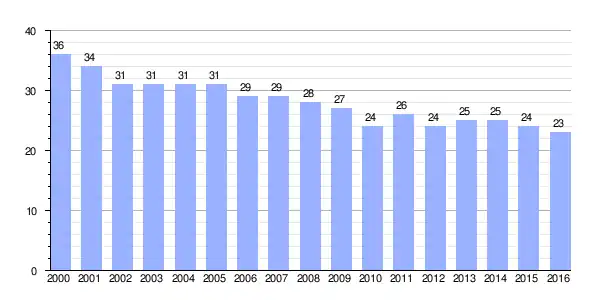 | Gráfica de evolución demográfica de Vozmediano[2] entre 2000 y 2016 |