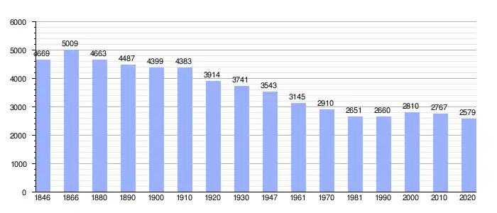 | Gráfica de evolución demográfica de Vresse-sur-Semois entre 1846 y 2020 |