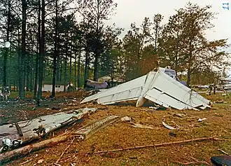 En el momento del accidente el avión volaba desde Huntsville, Alabama a Atlanta, Georgia. Sesenta y tres personas a bordo fallecieron a bordo (incluidos los pilotos) junto con nueve personas en tierra. Veintitrés pasajeros sobrevivieron incluidas las auxiliares de vuelo. Uno de los pasajeros que sobrevivió inicialmente murió un mes después.