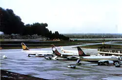 ![]() Imagen tomada de la aeronave siniestrada, G-BGJL, Boeing 737-236 Advanced, llamada Goldfinch, en 1982 | ||
