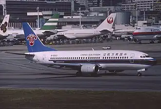 El avión implicado en el accidente fue un Boeing 737-3Y0, registro B-2523, que contaba con dos motores CFMI CFM56-3B-1. Con número de serie 24913, efectuó su primer vuelo el 10 de mayo de 1991 y fue entregado directamente desde fábrica a China Southern Airlines el 23 de mayo del mismo año.[1] El aparato tenía una antigüedad de poco más de 18 meses en el momento del accidente, y había operado durante 4.165 horas y 3.153 vuelos.[2]