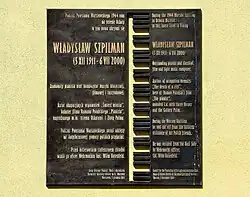 Tablilla conmemorativa de la vida y obra de Wladyslaw Szpilman.