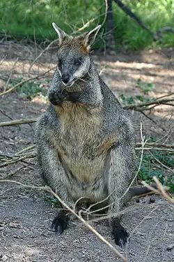 El walabí de pantano o walabí negro (Wallabia bicolor) es un pequeño marsupial macrópodo endémico del este de Australia.[2] Es el único representante conocido del género Wallabia.[3][4] La especie es bastante común, y no se encuentra amenazada.[1]