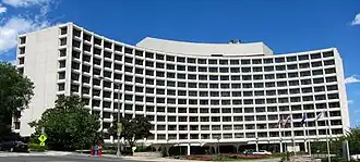 El Washington Hilton, ubicado en el antiguo emplazamiento de la finca Oak Lawn, fue diseñado por el arquitecto William B. Tabler[3] y desarrollado por Uris Buildings Corporation.[4] La inauguración fue el 25 de junio de 1962[5] y el hotel abrió oficialmente tres años después, el 25 de marzo de 1965[6] La estructura presenta un distintivo diseño de doble arco. Durante mucho tiempo tuvo el salón de baile de hotel sin columnas más grande de la ciudad. Ha albergado eventos como la Asociación de Corresponsales de la Casa Blanca, la Asociación de Corresponsales de la Casa Blanca y el Desayuno Nacional de Oración.