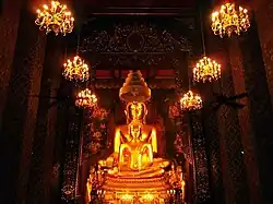 Su sala de oración principal tiene una imagen de Buda creada alrededor de 1357, llamada Phra Phuttha Chinnasee (พระพุทธชินสีห์), trasladada desde el templo Wat Phra Si Rattana Mahathat, en la provincia de Phitsanulok.[4][5][6]