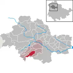 Se encuentra ubicado al norte de la ciudad de Eisenach, al noroeste de Erfurt, la capital del estado.