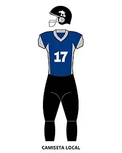 La indumentaria del club consiste en casco negro con detalles blancos, camiseta azul con detalles blancos y grises con la leyenda UFRO en la espalda, pants y medias negras.